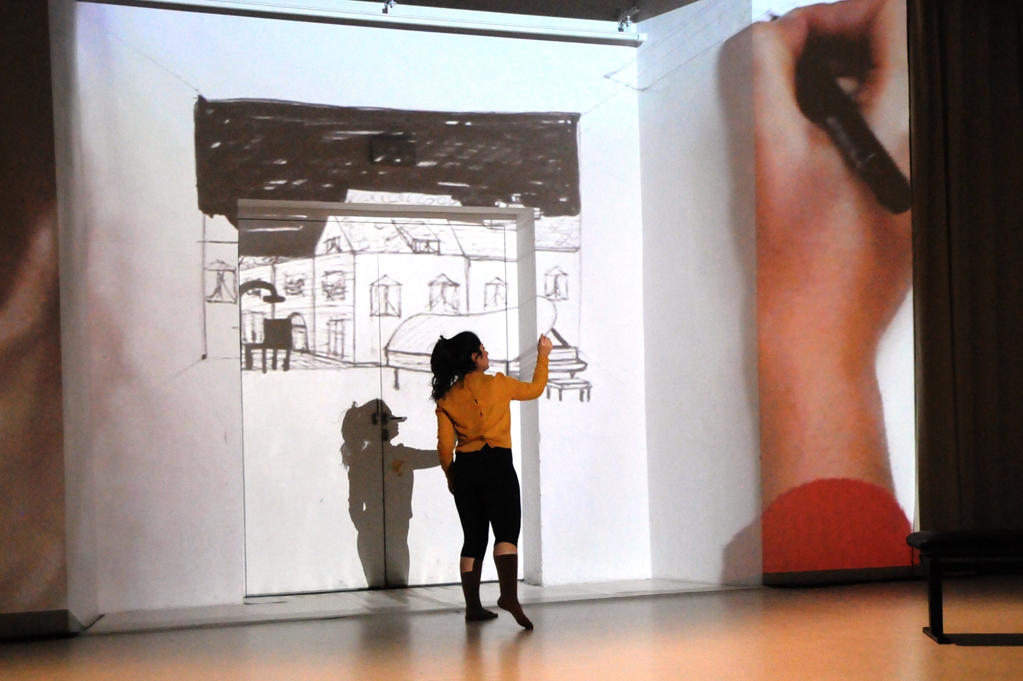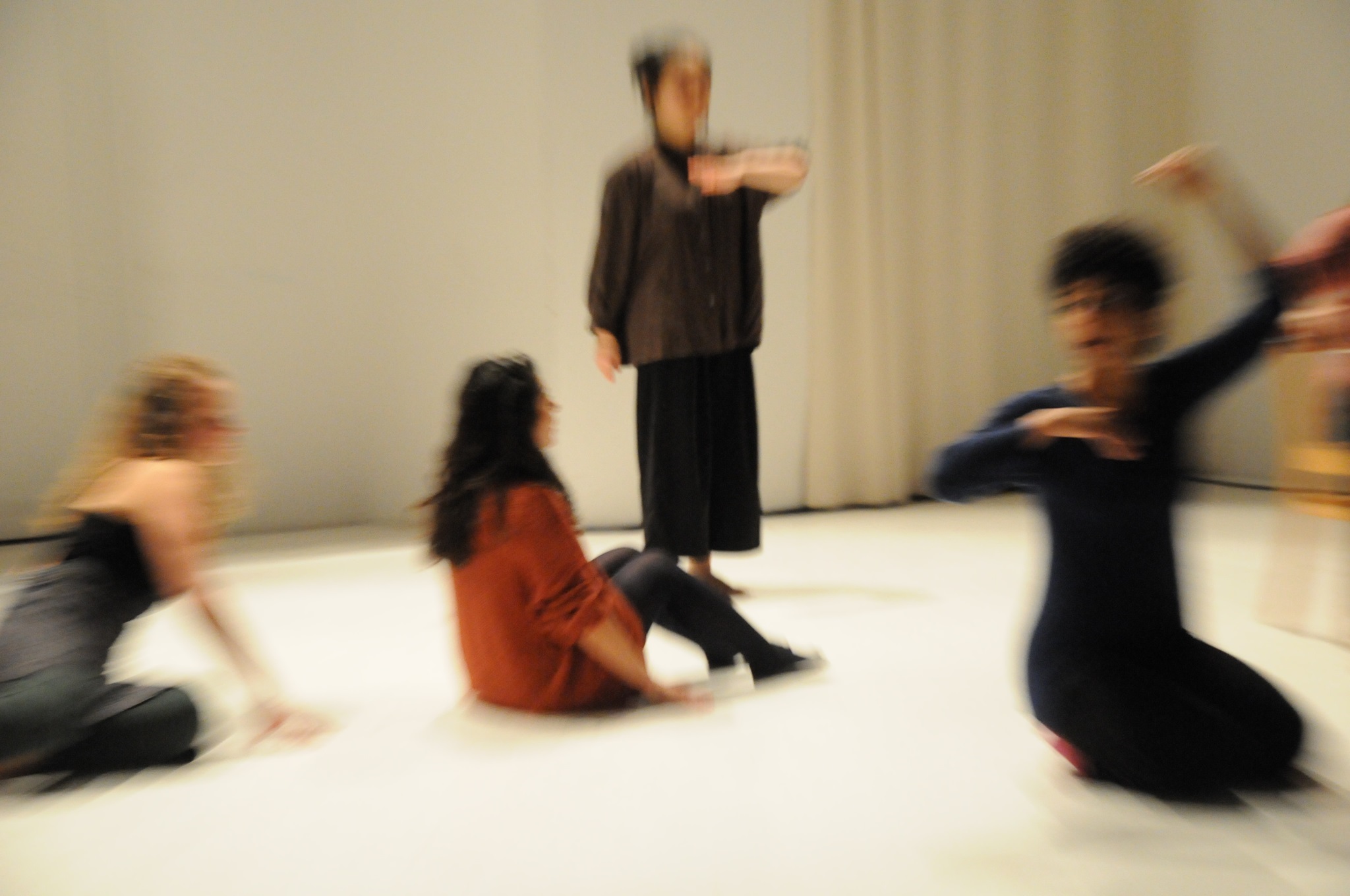 Aufführung Ohne Worte mit den Performances Grau und Perspective im Dschungel Wien zusammen mit anderen Künstler*innen.