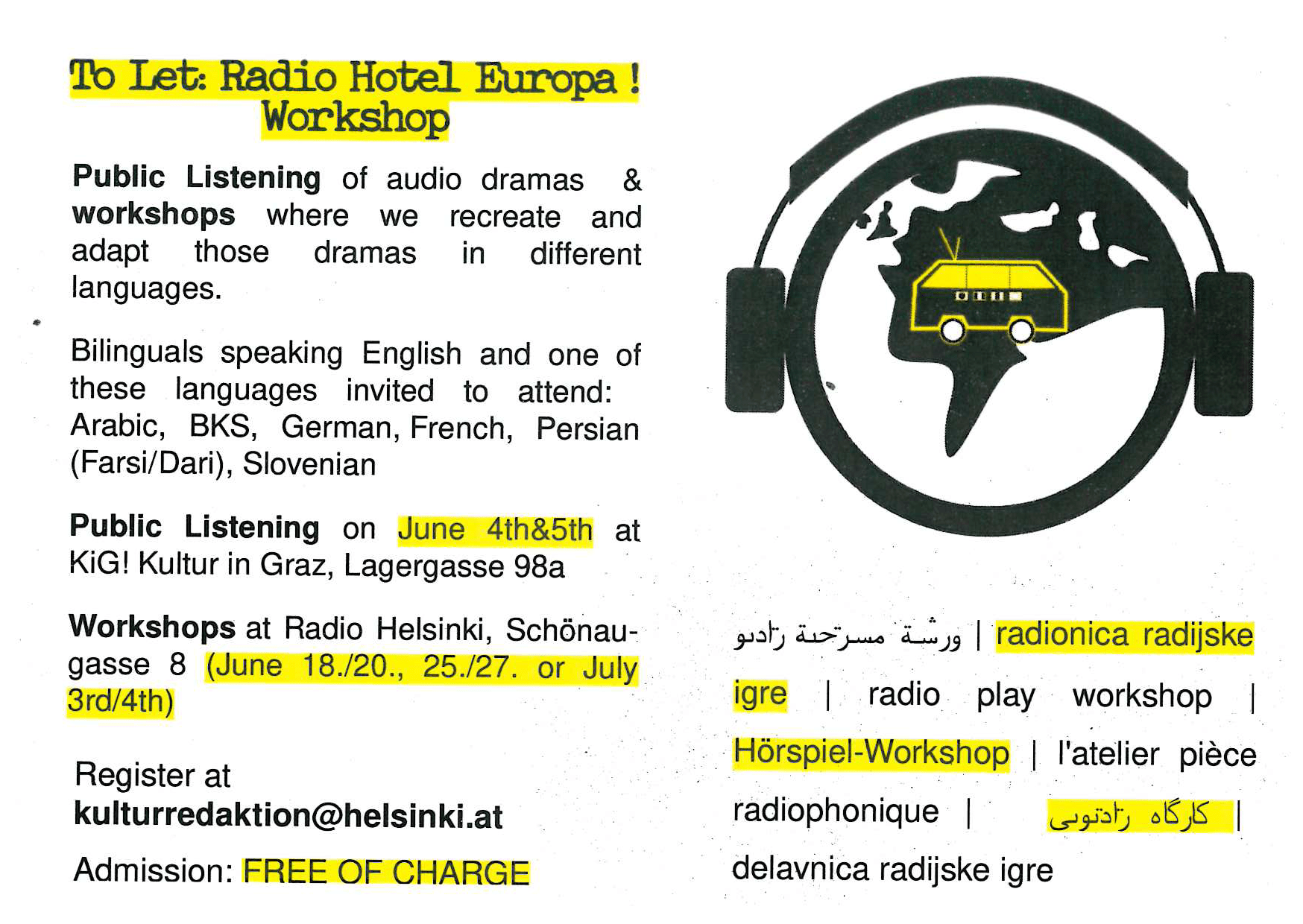 04.07. & 01.08.2021 - Radio Hotel Europa Workshop Graz: