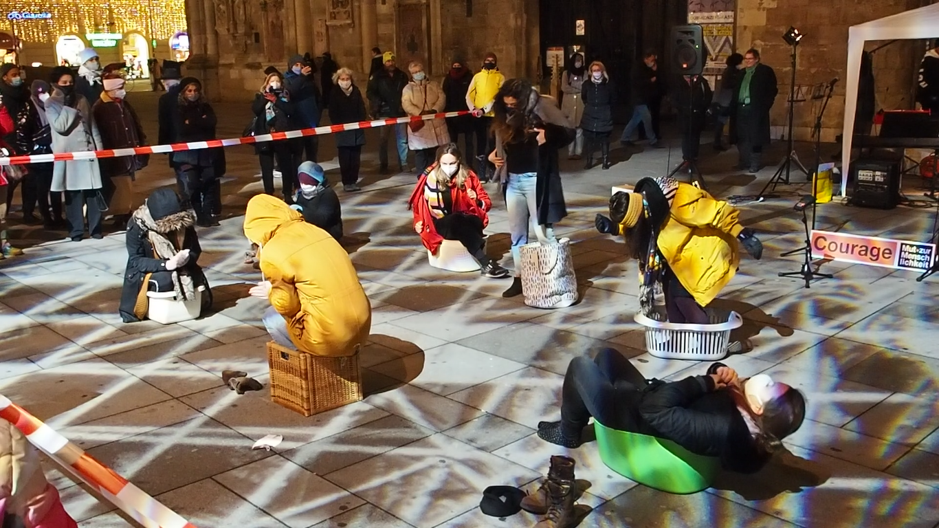 Performance an einer Veranstaltung des Vereins Courage - Mut zur Menschlichkeit für die Flüchtlingskinder im Lager Moria Griechenland.